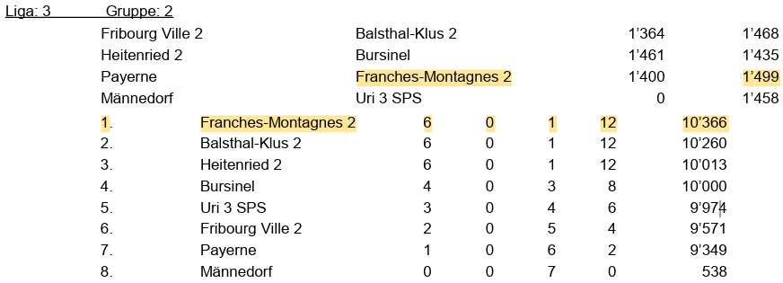 Championnat Suisse d’équipe en 2 et 3ème ligue